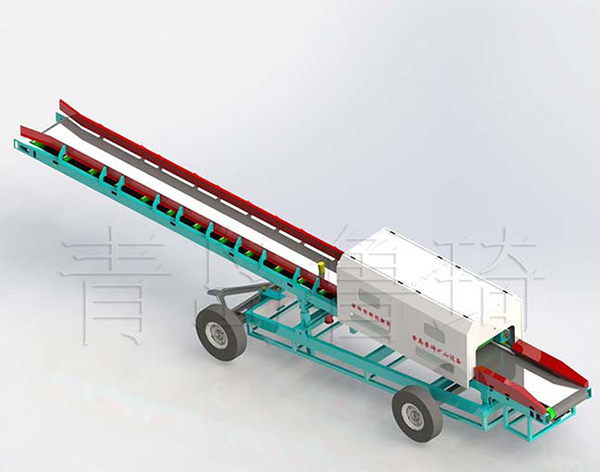 袋裝板結(jié)物料從入口進(jìn)入,在輸送帶前進(jìn)過程中,由兩組(220KG重)震動框架的共四個震動輥進(jìn)行震動擠壓,頻率1000次/分,后由出口輸出,完成震動擠壓松散的過程。并輸送至高處,有震散裝車的雙重作用。